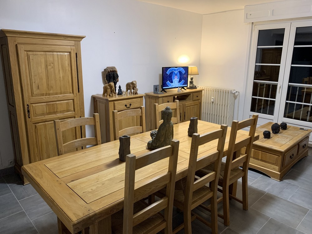 - Une entrée, un wc séparé, une cuisine aménagée et équipée ouverte sur un séjour / salon, une salle d'eau, 3 chambres et une cave.